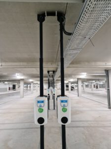 Case bekijkenIn de garage van het nieuwe winkelcentrum outlet Sugarcity hebben we in opdracht van BlueCurrent 40 laadpunten geplaatst. Hiervoor hebben we een verdeelkast gemaakt op een 250 ampère veld. Voor de voeding van de verdeelkast en de voedingen van de laders hebben wij de goot aangelegd. We hebben 40 voedingen gelegd voor 40 laadpunten om tot 22KW laadvermogen te kunnen bieden. Alles laders zitten in een netwerk switch aangesloten welke wij ook geleverd hebben. 38 laders staan op reguliere plekken, 2 laders hebben we op invalideplekken gezet. De laders staan op de garage paal van BlueCurrent met een bevestiging onder en boven voor extra stevigheid